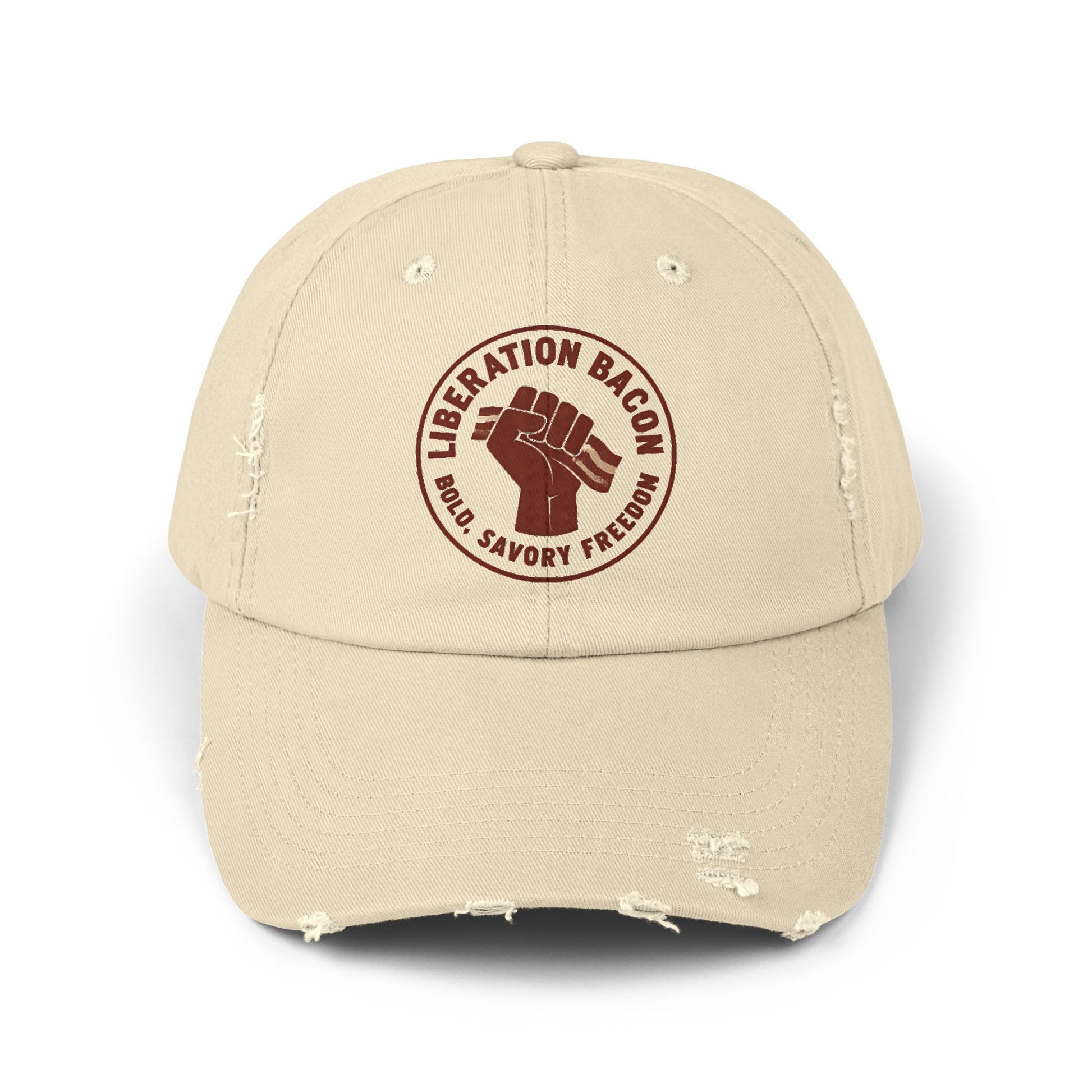 And nothing says unapologetically free quite like the Liberation Bacon Distressed Cap.