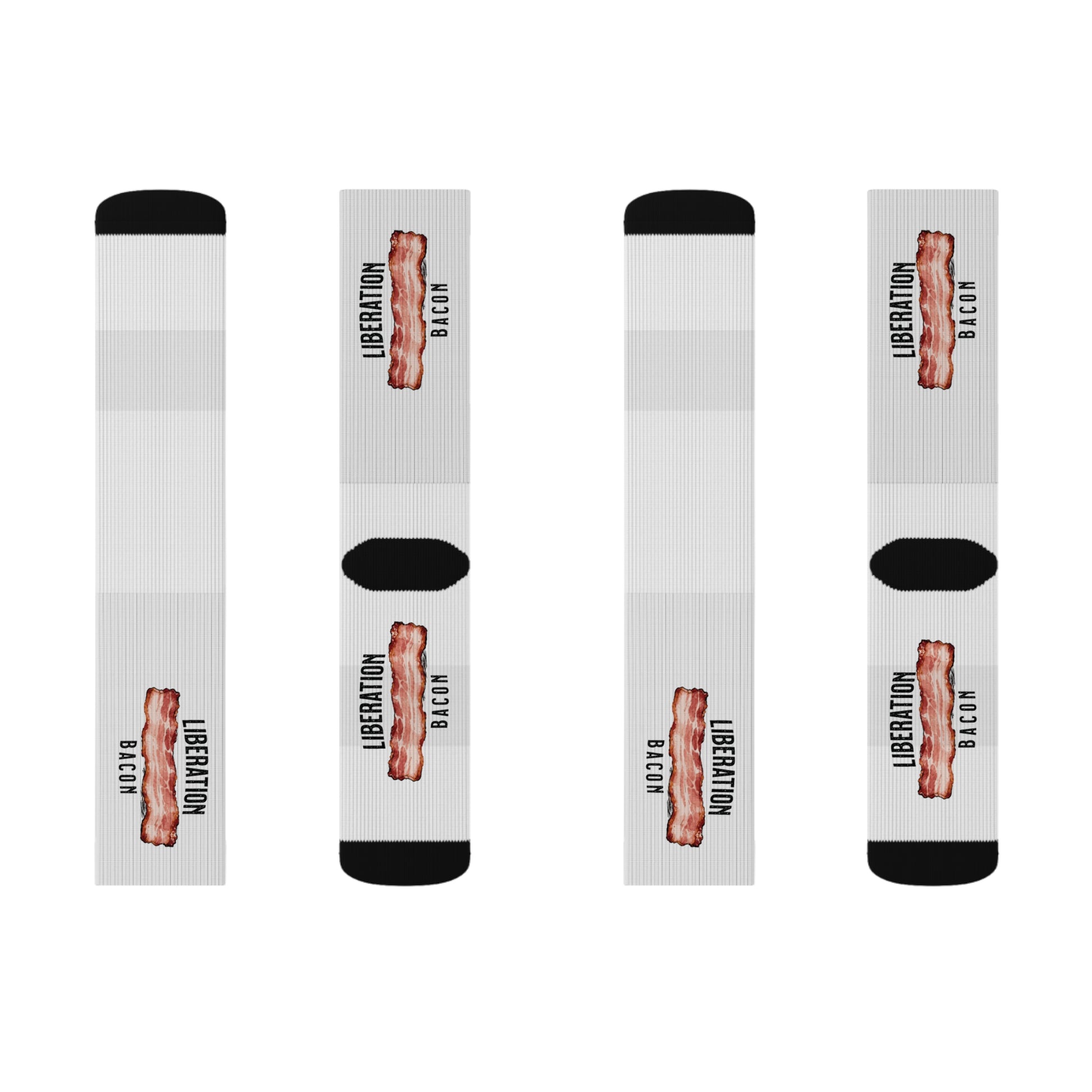 Introducing the Liberation Bacon All-Over Print Socks, designed for those who walk bold, talk louder, and live crispy.